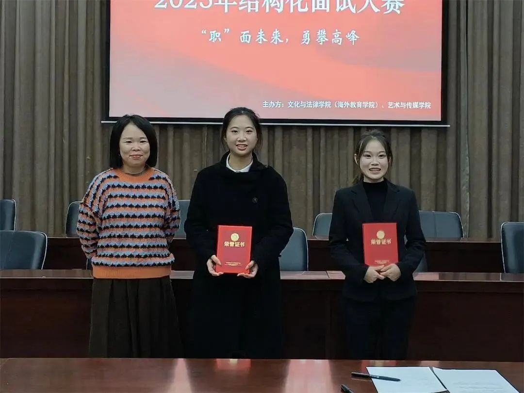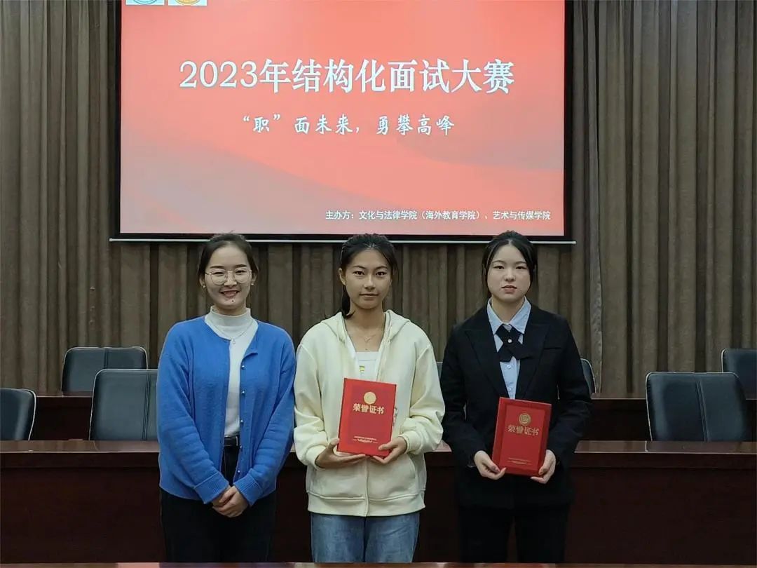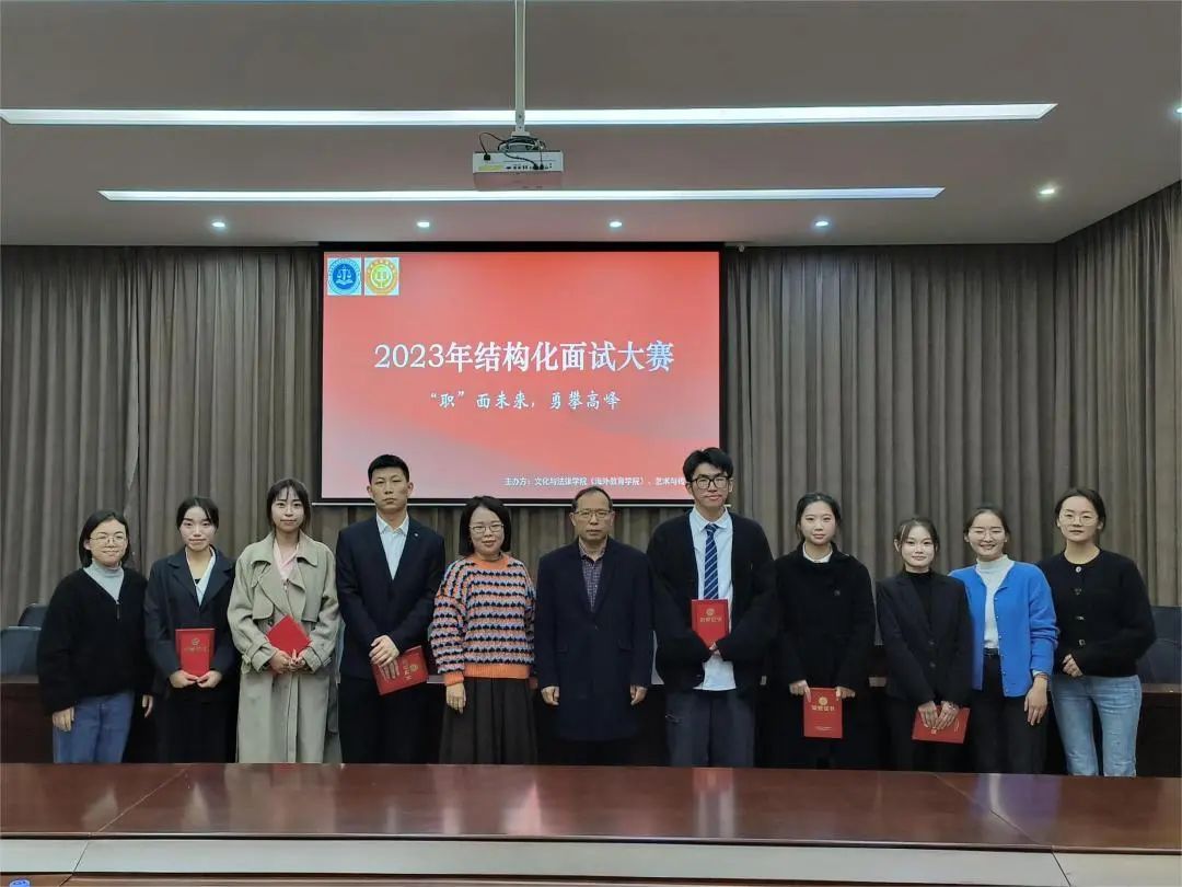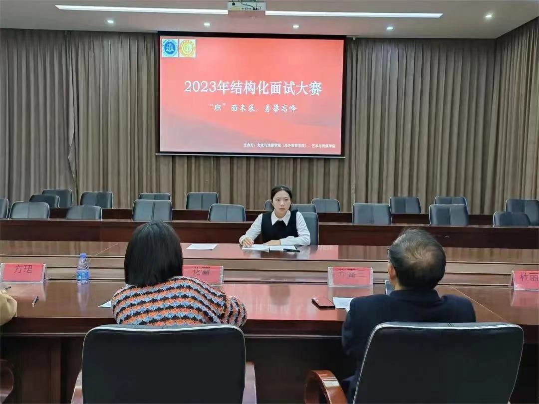 为了使大学生充分了解结构化面试的流程,掌握面试技巧,把握就业机会,2023年12月29日下午,以“‘职’面未来,勇攀高峰”为主题的2023年结构化面试大赛在图书馆报告厅开展。本次大赛由文化与法律学院(海外教育学院)、艺术与传媒学院共同举办,文化与法律学院(海外教育学院)齐喜三老师、花蕾老师、辅导员邱海乔老师,艺术与传媒学院辅导员杜丽婷老师、林璐璐老师、方珺老师担任评委。