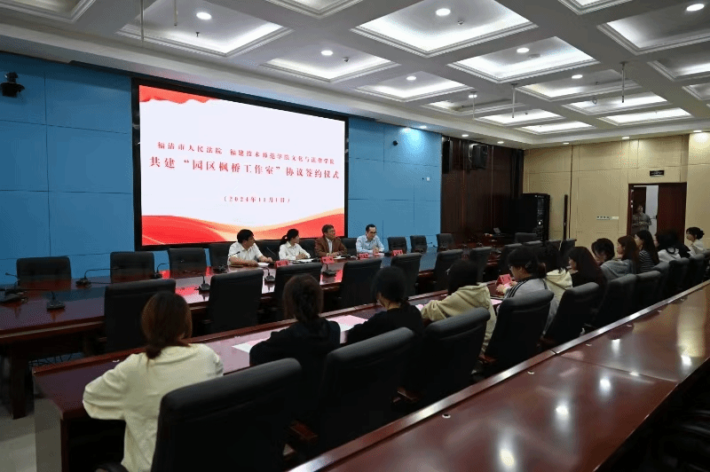 为进一步加强院、校交流,促进法学教育和司法审判的共同发展,11月1日,学院与福清市人民法院举行“园区枫桥工作室”共建仪式,法院党组成员、副院长魏昀,学院院长陈春彦,中印尼经贸法律研究中心执行主任江悦庭以及信用风险管理与法律防控专业的同学参加了此次活动。活动由法院审判委员会委员、民二庭庭长林星主持。