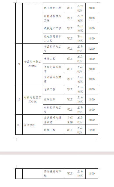 2.省级重点学科本科专业(食品科学与工程、环境工程):5200元/生/年;