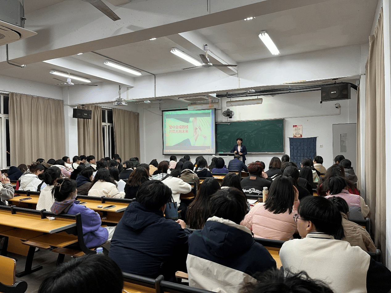 为深化学生对保险行业合规管理的理解,提升法律风险防范意识,我院于2024年12月17日举办了一场主题为《坚守合规防线,共筑光明未来》的学术讲座。本次讲座特邀中信保诚人寿总监谢莉琼女士担任主讲嘉宾,由学院副院长张剑平主持,吸引了法控专业众多师生的积极参与。