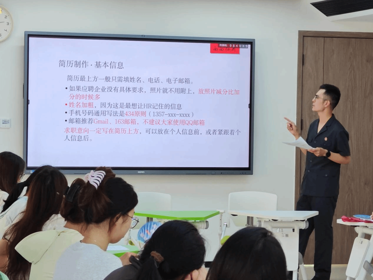 在内容呈现方面,林文维法官着重指出成就塑造的关键作用。成就的来源不仅局限于工作经历,比赛经历、专业协会活动、社会活动等都是丰富简历内容的宝贵素材。他还建议同学们多使用行为动词,如“完成”“争取”“教导”“辅导”“安排”“计划”等,这些词汇能够赋予经历表述更强的行动力,生动展现个人能力。同时,合理运用专业术语也至关重要,比如在市场推广、展会组织、市场调查等工作描述中精准使用,能够凸显专业素养,让用人单位对求职者的专业能力刮目相看。