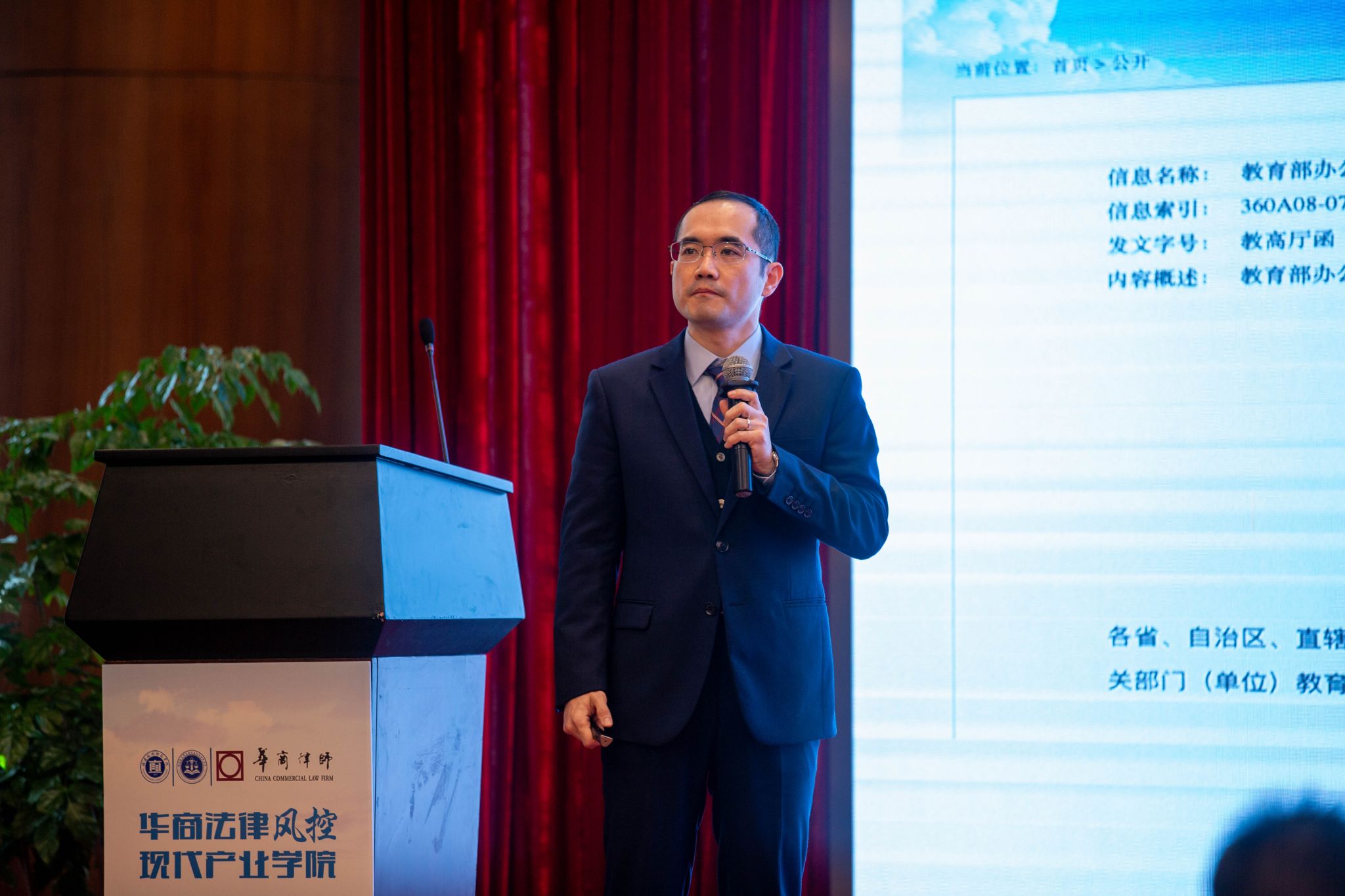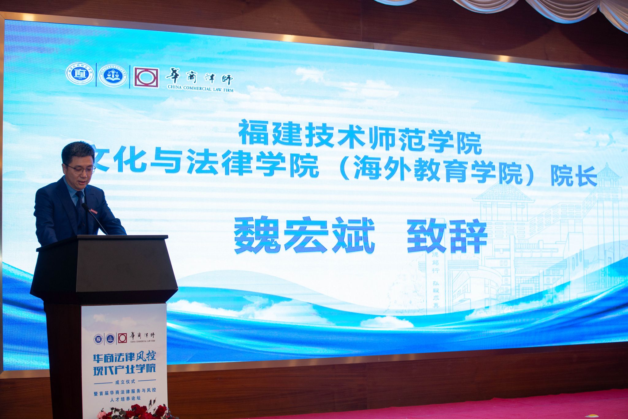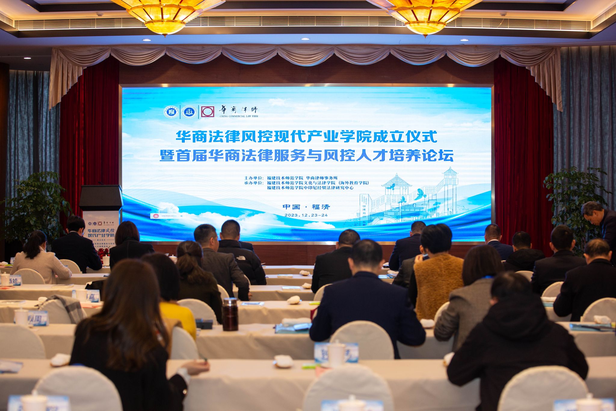 2023年12月24日,华商法律风控现代产业学院成立大会暨首届华商法律服务与风控人才培养论坛在福清召开。华商律师事务所首席合伙人高树主任,华商(泉州)律师事务所发展战略委员会主任、执行合伙人张选举律师,华商律师事务所合伙人 、资本市场与证券法律专业委员会委员游锦泉律师,华商律师事务所粤港澳大湾区律师、香港律师周立新,华商律师事务所业务运营中心主任陈美婷,华商律师事务所业务运营中心专员宋星颖,我校继续教育学院院长何家标、科研处副处长王昌伟、教务处副处长林宗栋,以及文化与法律学院王耕副书记(主持工作)、魏宏斌院长、谢西娇副院长、张剑平副院长等党政领导干部出席了此次大会,省内多家律师事务所和大中型企业代表参加了成立大会。会议由文化与法律学院副院长张剑平主持,院长魏宏斌和华商律师事务所首席合伙人高树主任在大会上致辞。
