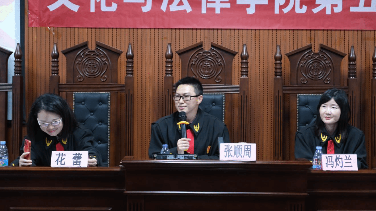 4月17日晚,由福建技术师范学院文化与法律学院主办,法律援助工作站承办的第五届模拟法庭辩论赛决赛在科学楼模拟法庭实验室举行。文化与法律学院党委副书记(主持工作)王耕、院长陈春彦、副院长谢西娇、张剑平等党政领导和辅导员代表魏明杰老师应邀莅临观赛,信用风险管理与法律防控专业魏宏斌、江悦庭、张顺周、花蕾、陈圣利、冯灼兰等老师担任比赛评委,张顺周、花蕾、冯灼兰三位老师担任本次比赛的审判长及审判员。信用风险管理与法律防控专业的学生代表也到场参加活动。