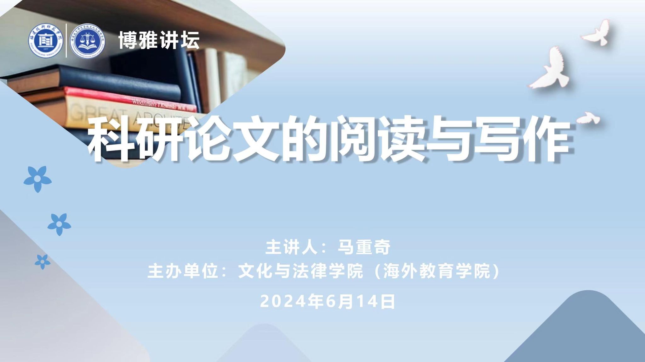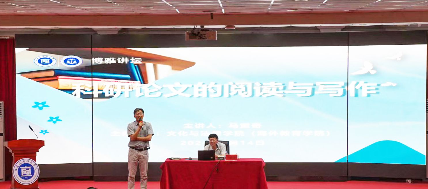 6月14日下午,国务院学位委员会中国语言文学学科评审组专家、福建师范大学文学院教授、博士生导师马重奇在科学楼金泰科学楼报告厅作题为“科研论文的阅读与写作”的学术讲座。讲座由我院院长陈春彦主持,学院副院长谢西娇、汉语言文学专业部分老师、学院21级全体本科生参加此次讲座。