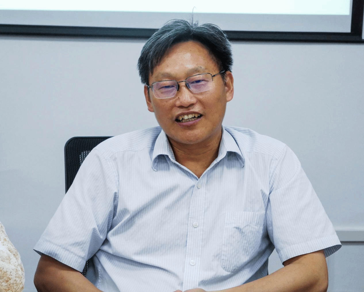 图为谢欣颖老师聆听毕业生实习经历