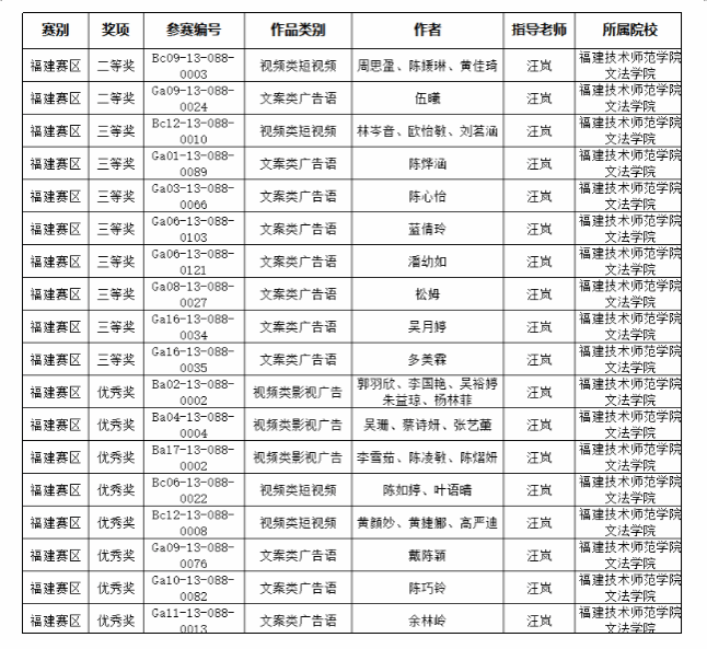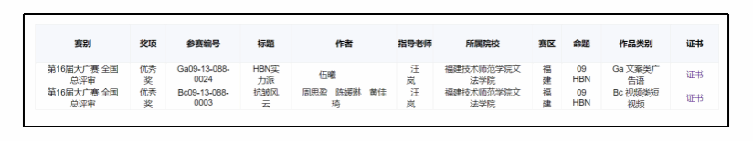 2024年第16届全国大学生广告艺术大赛获奖名单(福建赛区)