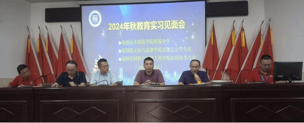 9月9日上午,福建技术师范学院附属中学为我院2025届汉语言文学专业(师范)本科18 名实习生举办了实习见面会。附中校领导陈兢、魏远盛及相关科室主任、年段长、语文组老师和我院主持工作党委工作的副书记王昌伟、带队指导老师成业博士、庄亮亮博士出席本次活动。