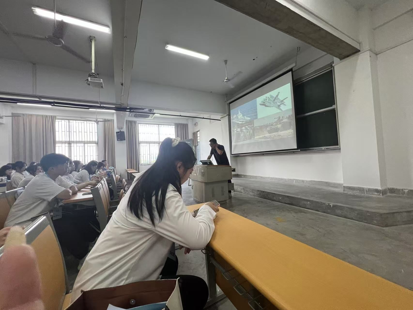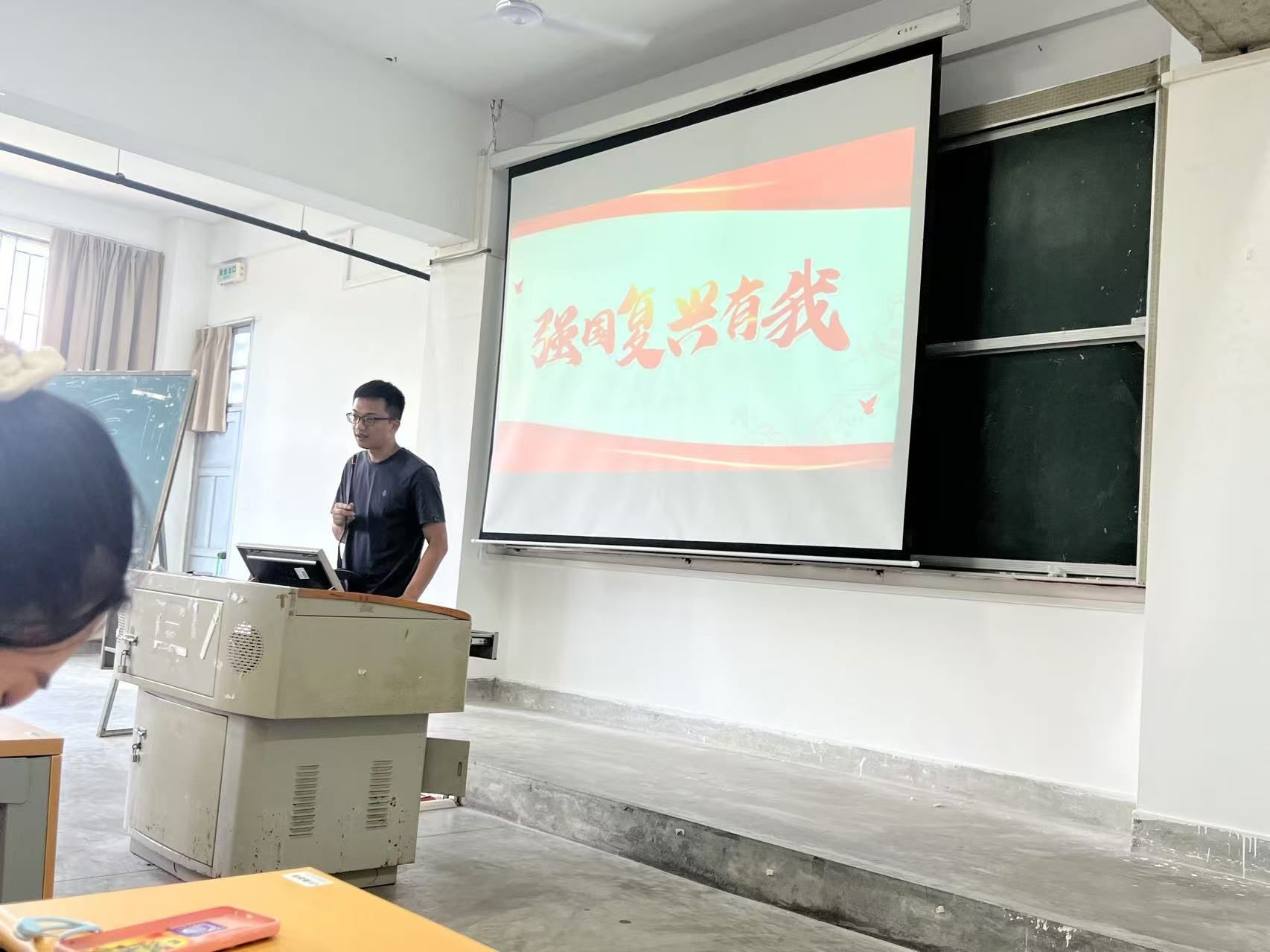 最后,钟老师以“强国复兴有我”为主题开展爱国主义教育宣讲,运用案例讲解、数据分析、图片展示等形式,解答了“为何强国”、“何为复兴”以及“如何有我”,引导青年学子挺膺担当,为实现中国式现代化贡献青春力量。