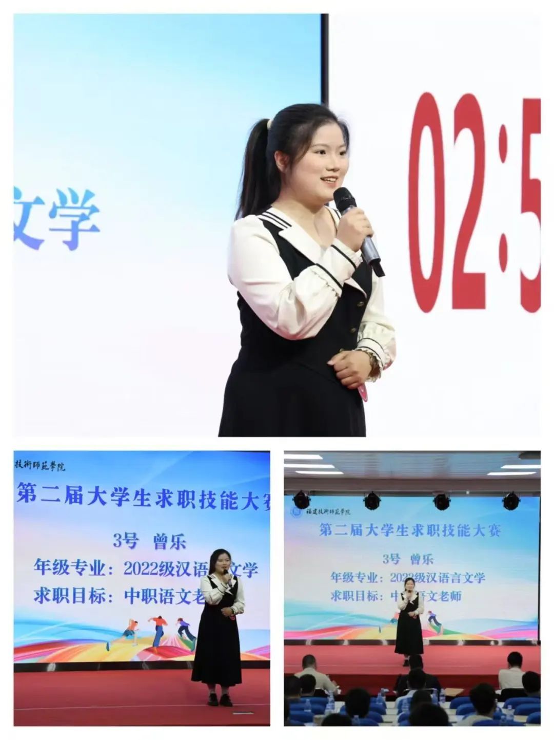 5月14日,福建技术师范学院第二届大学生求职技能大赛圆满落幕。我院2022级汉语言文学(师范)专业曾乐同学凭借出色的职业素养、扎实的教学功底和真挚的教育情怀,以总分第一名的成绩斩获大赛一等奖。