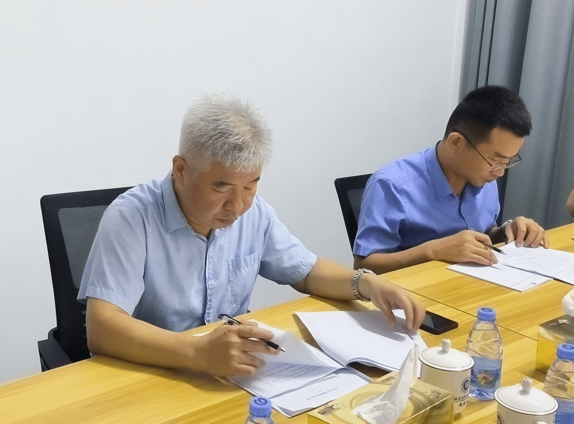 改造一新的鹿鸣楼是学校尊师重教的新举措,我院喜获崇文斋和尚法居两间,于昨日正式启用。学院已将其打造成老师们开展教学、科研交流的共享空间。调研开始前,赖书记兴致勃勃地和大家讨论了如何为它们匹配相应的字体,以体现文法学院的特色,增强老师们的归宿感。