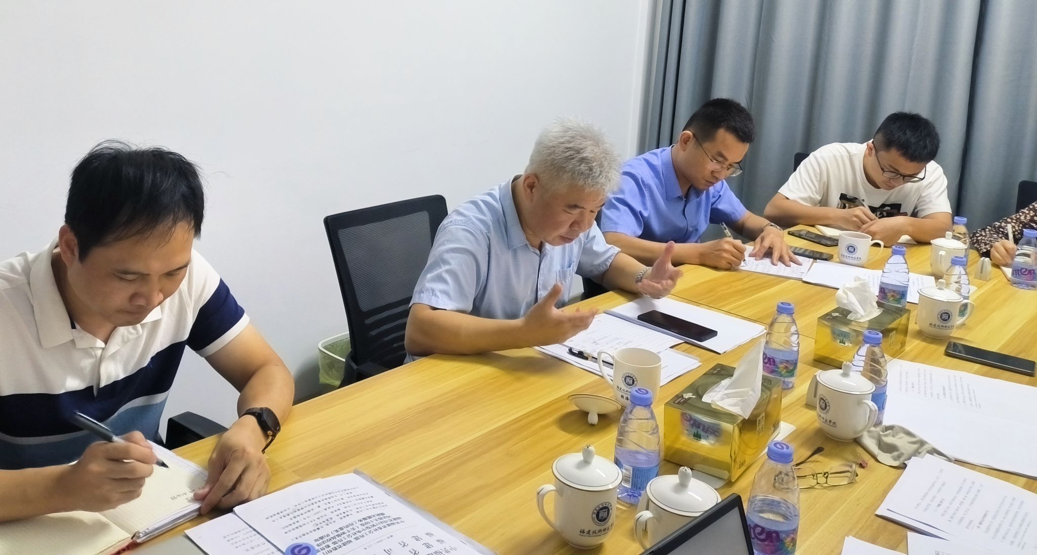 赖书记仔细听取大家汇报,认真记录谈话内容后,肯定了学院领导班子团结一致,在全面从严治党、人才引进、人才培养、教学科研和国际化办学等方面取得了可喜的成绩,希望学院发挥专业历史悠久、两岸师资交流和国际留学生不断增加等优势,开拓学院独有教学研究领域与方向,努力实现高水平项目和成果的突破。针对调研中提出的问题,赖书记与大家逐一加以分析,提出破解思路与方法。