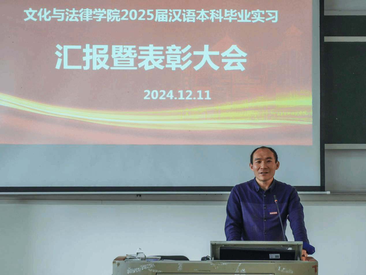 为总结我院汉语言文学专业学生实习成果并分享经验,12月11日下午,我院于教学楼301举办2025届汉语言文学本科毕业生教育实习汇报暨表彰大会。主持学院党委工作副书记王昌伟、副院长谢西娇、专业主任吴章燕、专业副主任林海、辅导员韩奥迪,以及汉语言专业全体老师,21级、22级汉语言文学本科、23级汉语言专升本学生参加本次活动。