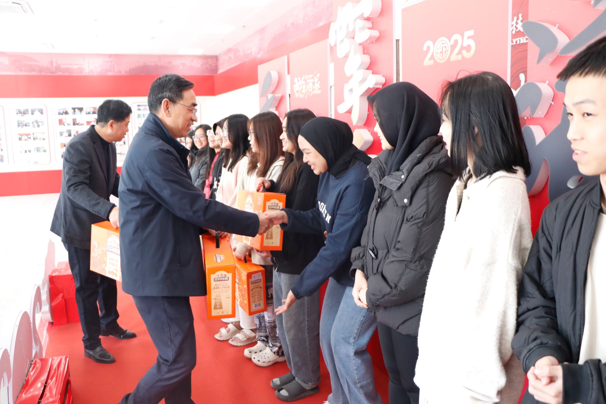 在慰问活动中,商副校长与留校学生代表进行了亲切交流,特别关注春节期间留校同学的生活和学习情况。他向国际学生介绍了中国“过年”的传统,“过年就是所有家人从五湖四海回到家里,家人相聚,有钱没钱不要忘了回家过年”。同时,他勉励大家继续保持锐意进取、永不懈怠的精神状态,以敢闯敢干的奋斗姿态迎接新一年的学习和生活。他表示,学校将用心用情做好寒假期间的服务保障工作,让同学们在学校感受到家的温暖。