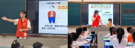 启动仪式后,我院志愿者化身“知识引路人”,带领小学生开启沉浸式阅读之旅。其中,《小阿力的大学校》以温馨故事,讲述小阿力从不安上学到爱上校园的转变,唤起小朋友们对校园生活的向往。文化寓言言简意赅、哲理深刻,以生动情节为小朋友们成长指引方向。