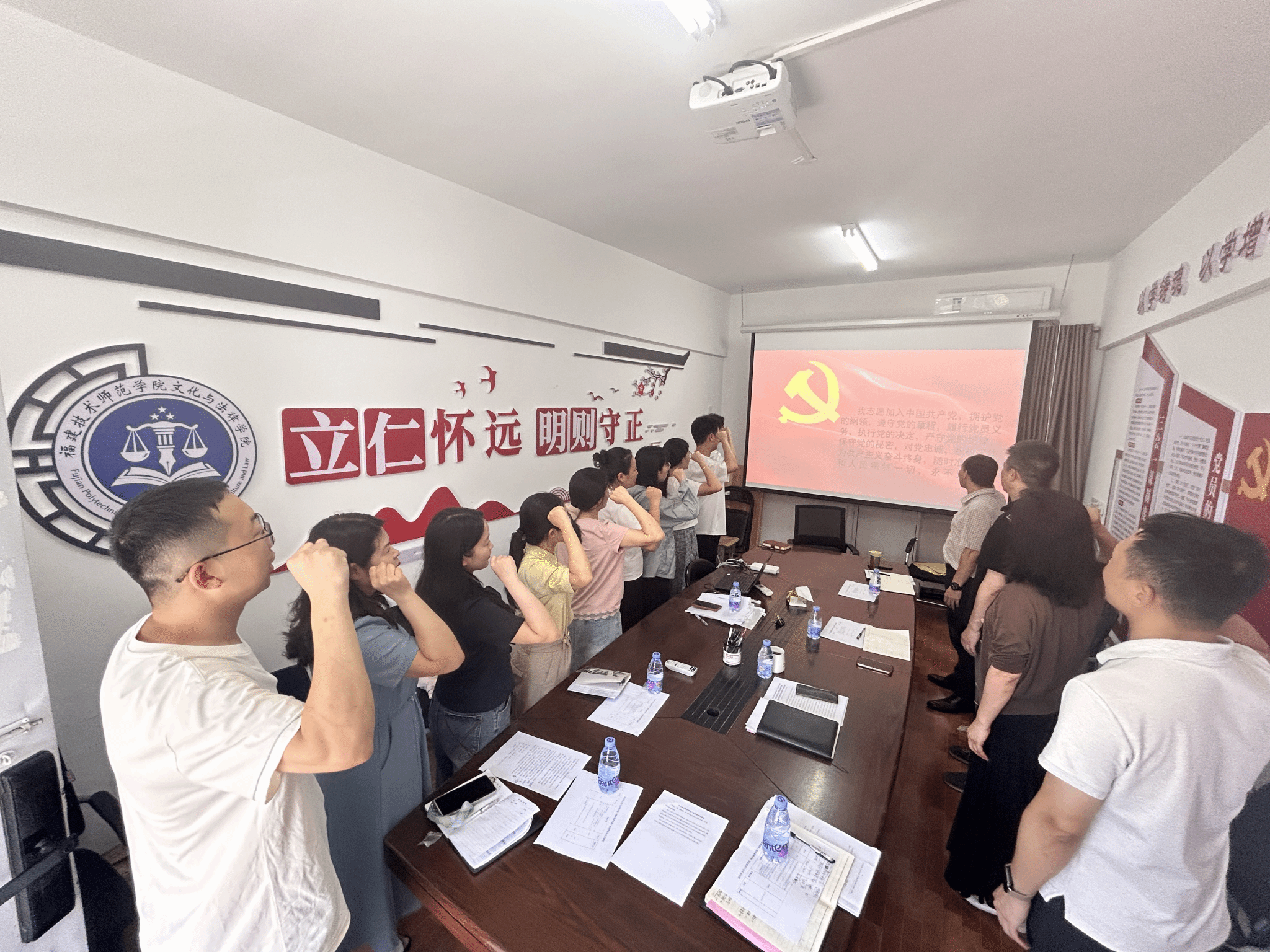 为庆祝中国共产党成立104周年,激励广大党员担当有为,7月1日下午,我院开展“重温入党誓词 凝聚奋进力量--庆‘七一’”特别活动,院党政领导班子、专业主任、全体辅导员和办公室党员参加活动。