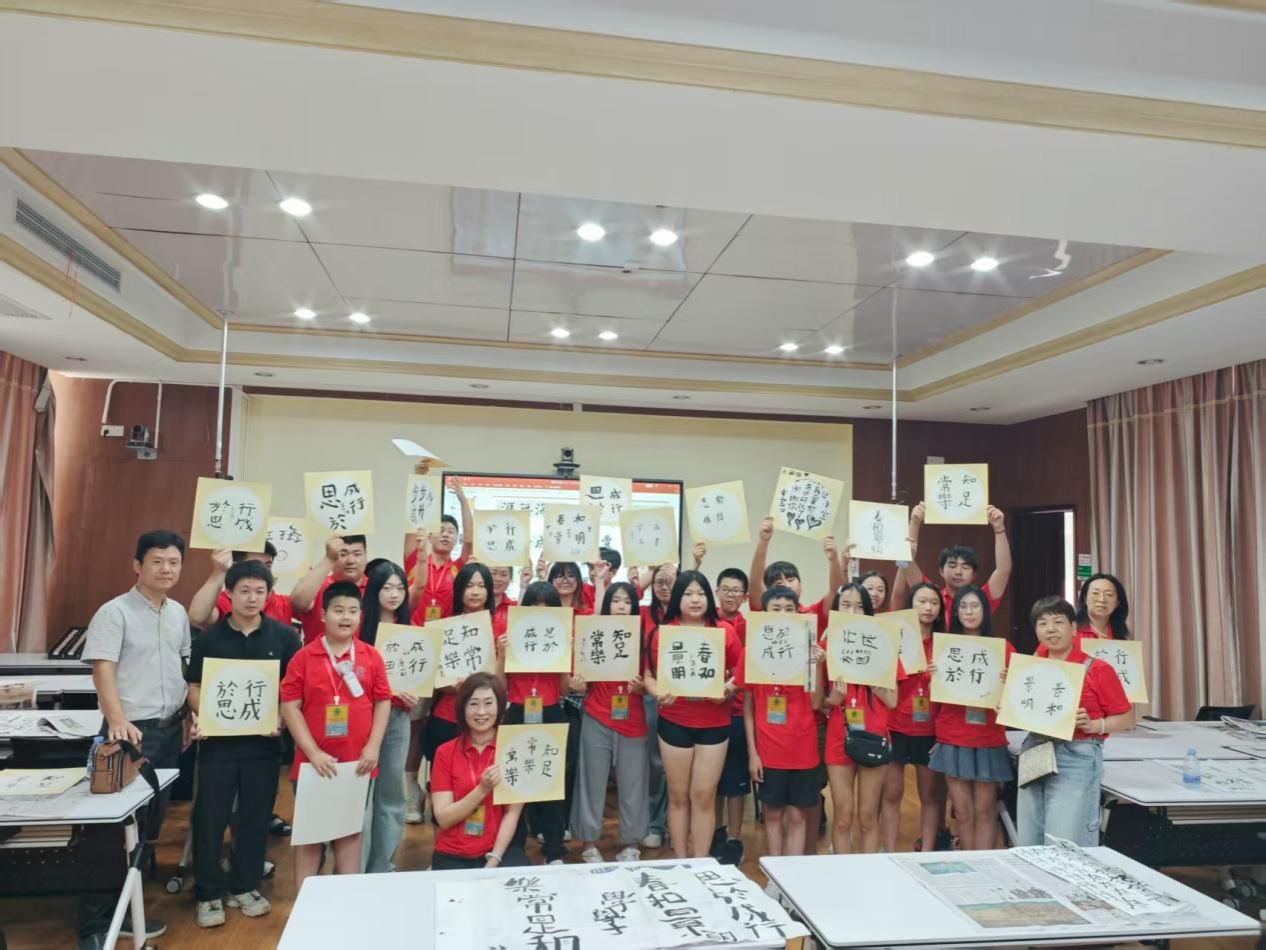 在热烈的掌声中,举行了庄重的授旗仪式,标志着“寻源祖地看福清”夏令营正式启航。开营仪式结束后,营员们走进多媒体教室,体验中国书法文化。从汉字起源到汉字发展,从握笔、运笔到书写汉字,大家沉浸在方块字的艺术魅力中,感受汉字承载的历史与文化内涵。