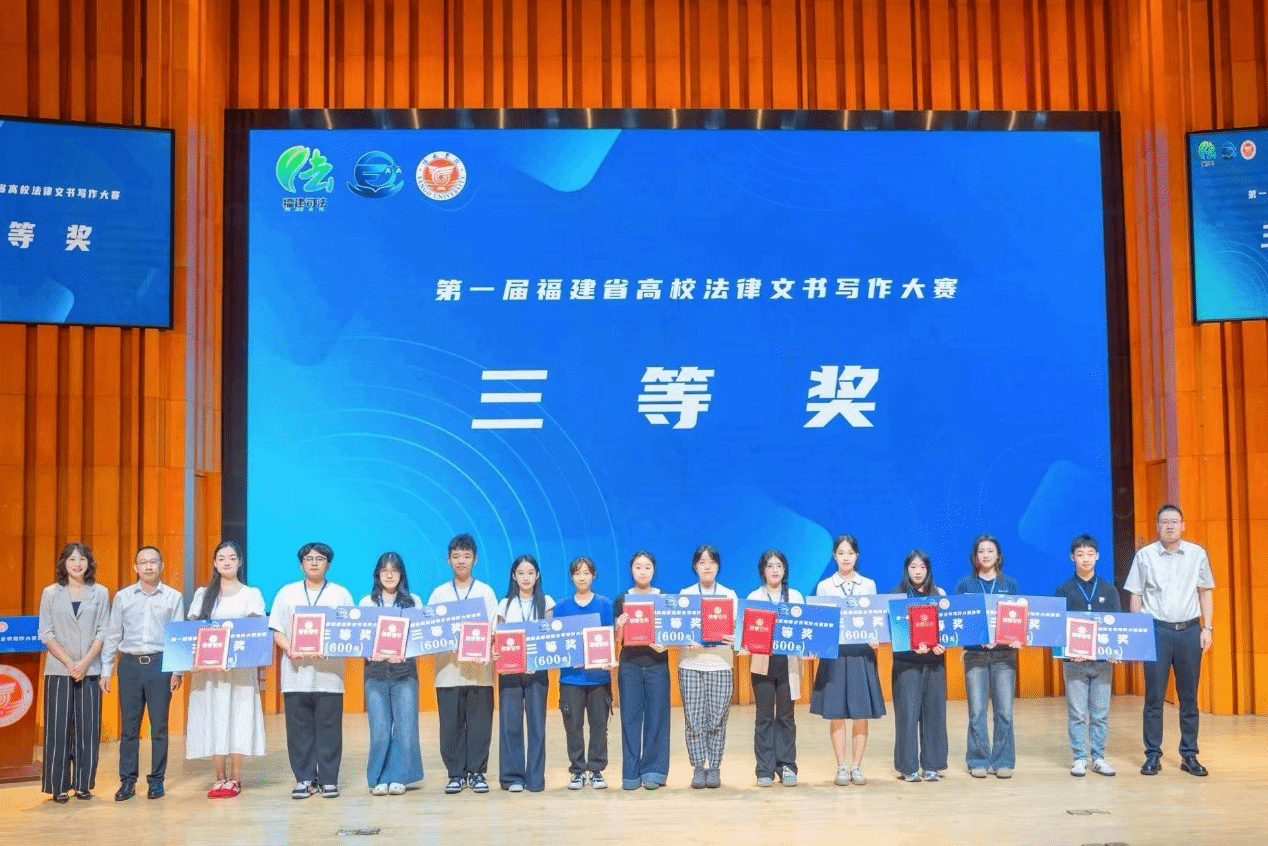 2025年10月12日,在福建省司法厅主办的首届福建省高校法律文书写作大赛中,我院学子取得优异成绩。其中,陈俊杰同学(指导教师:花蕾)荣获一等奖,邱佳灵同学(指导教师:李小媚)、郑舒曼同学(指导教师:满文佳)获三等奖,花蕾老师获优秀指导老师奖。本次大赛分为初赛和决赛两个阶段。初赛以刑事案例为主题,吸引了全省高校三百余名学生参与。经过专家严格评审,共有35名选手脱颖而出,晋级决赛。决赛聚焦民事案件,要求选手在两小时内完成法律文书的撰写,充分考查了参赛选手的法律知识储备、逻辑思维能力和临场应变能力。