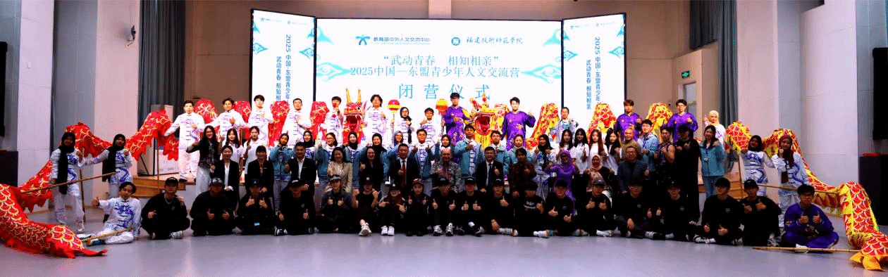 11月22日下午的闭营仪式上,姜兴山副校长在致辞中指出,作为古代海上丝绸之路的重要枢纽,福清见证了历史上中国与东盟的商贸往来与文明互鉴。此次活动选址于此,既是对历史纽带的致敬,亦是为新时代青年合作搭建平台。教育部中外人文交流中心副主任张学仁强调:“十天的交流超越了语言学习,更在心灵层面实现了跨文化共鸣——从舞龙时的同步律动到汉语对话中的思维碰撞,青年们用行动诠释了‘和而不同’的东方智慧。”印尼驻广州总领事斌德加特别赞赏营员们在短短两天内掌握舞龙、长拳等高难度技艺的卓越表现,并指出此类实践生动对中印尼青少年的交流极具意义。