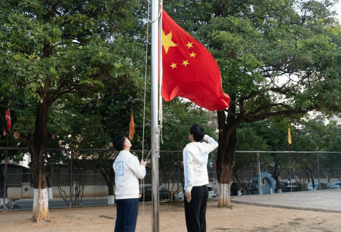 7时整,升旗仪式准时开始。伴随着雄壮的国歌,鲜艳的五星红旗在全体师生的庄严注目下,缓缓升起,迎风飘扬。