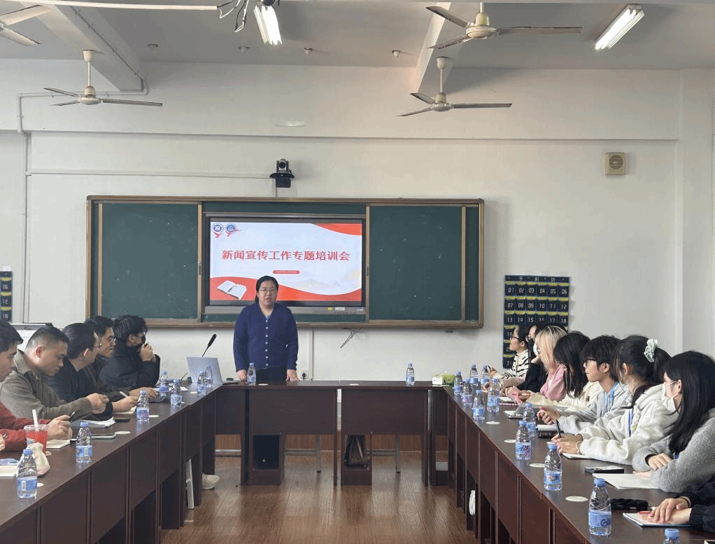 为认真贯彻落实习近平总书记关于改文风转作风重要指示批示精神,推动教育思想大讨论走深走实,切实提升师生新闻宣传素养与能力,11月26日下午,我院于科学楼506教室举办新闻宣传工作专题培训会。本次培训特邀学校党政办公室王若男老师担任主讲,我院30余位师生宣传骨干参加了此次培训。