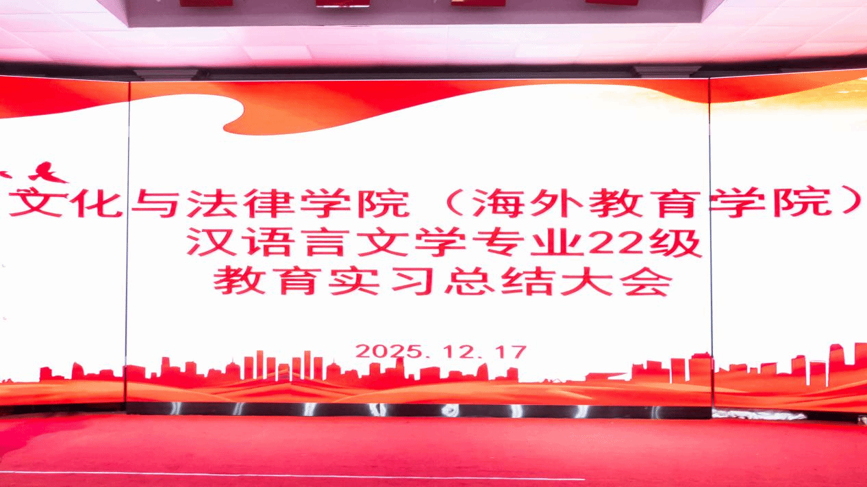 2025年12月17日,我院于金泰报告厅召开汉语言文学专业2022级教育实习总结大会。我院院长宋原、副书记王昌伟、副院长谢西娇,汉语言文学专业主任吴章燕,副主任庄亮亮、成业,汉语言文学专业教师代表以及2022级、2023级汉语言专业学生代表参加本次大会。