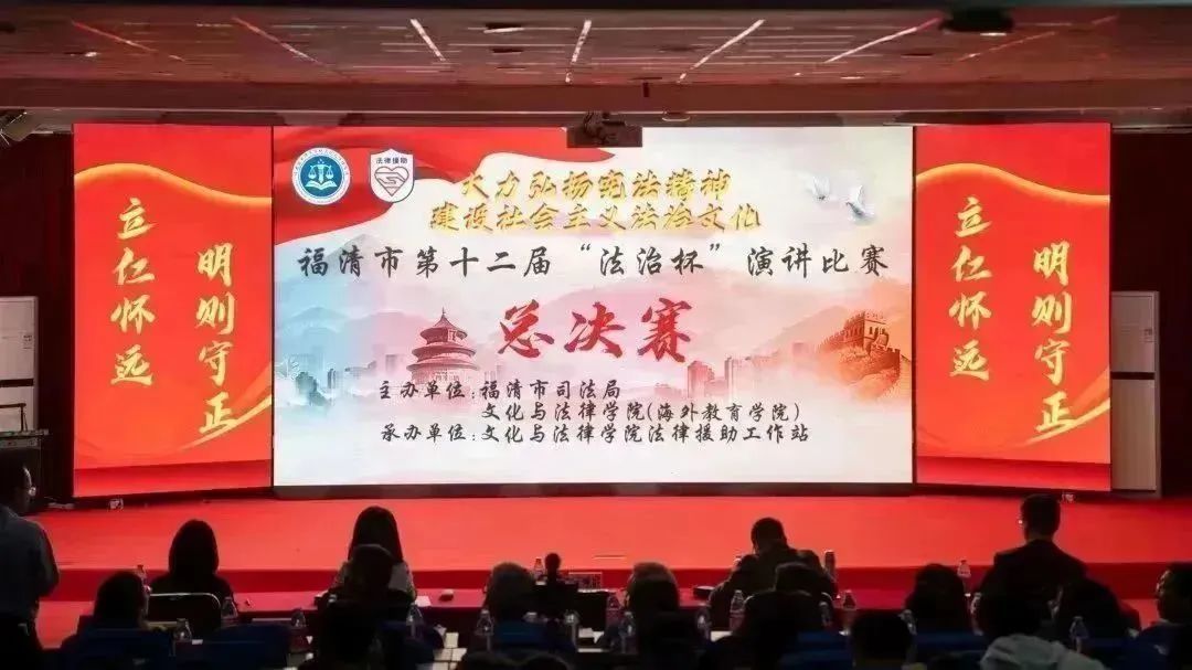 为迎接第十个国家宪法日和第六个“宪法宣传周”,宣传贯彻“大力弘扬宪法精神,建设社会主义法治文化”的活动主题,11月29日晚,我院与福清市司法局共同主办的市第十二届大学生“法治杯”演讲比赛总决赛在科学楼金泰报告厅顺利举行。