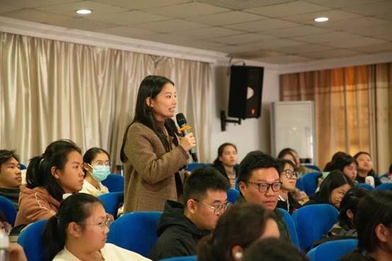 聘任仪式结束后,黄小娟老师为汉语言文学专业的同学们带来《基于核心素养的初中语文案例设计》主题讲座。在讲座中,黄小娟老师通过其教学案例设计展示,详细讲述了核心素养与语文教学新理念、目前语文教学现状剖析、一堂好课的理论依据和构成要素、好课的设计思路与策略、十种好课的设计方案,使汉语言文学师范生明确中学语文学科的课程标准,针对中学生的身心发展和语文学科的认知特点,运用学科知识和现代信息技术,进行教学设计、实施和评价,提升教学技能,为毕业就业做好充分准备。