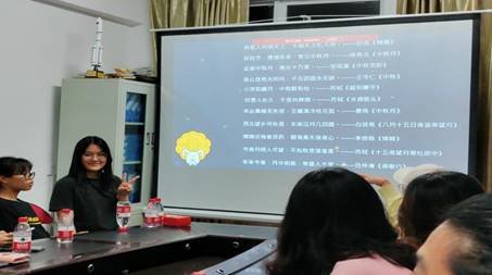 古诗是中华文化不可或缺的重要组成部分,活动中,老师准备了中秋节相关的古诗佳句,并鼓励学生们进行朗诵诗词,感受流传千年的古诗文化。学生们也积极,并且富有感情地朗诵了诗句,引来一片欢声鼓舞。