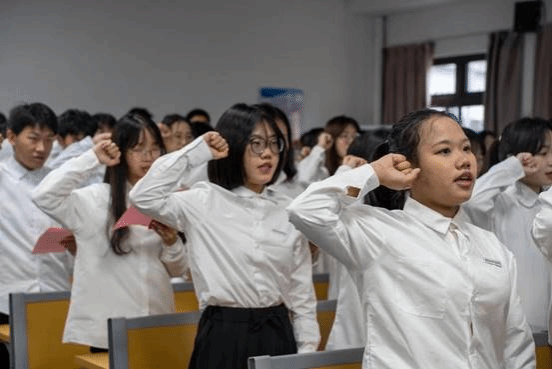 仪式开始前,全体人员观看了《宪法宣传视频》。随后,全体人员起立奏唱国歌,宪法宣誓仪式在庄严的国歌中开始。仪式由花蕾老师领誓,全体同学面对鲜艳的国旗,高举右拳,庄严宣誓。“我将忠于中华人民共和国宪法,维护宪法和法律尊严,坚守法治精神,追求公平正义”,铿锵有力的誓言展现了同学们作为未来法律人尊崇宪法、维护宪法尊严的决心。
