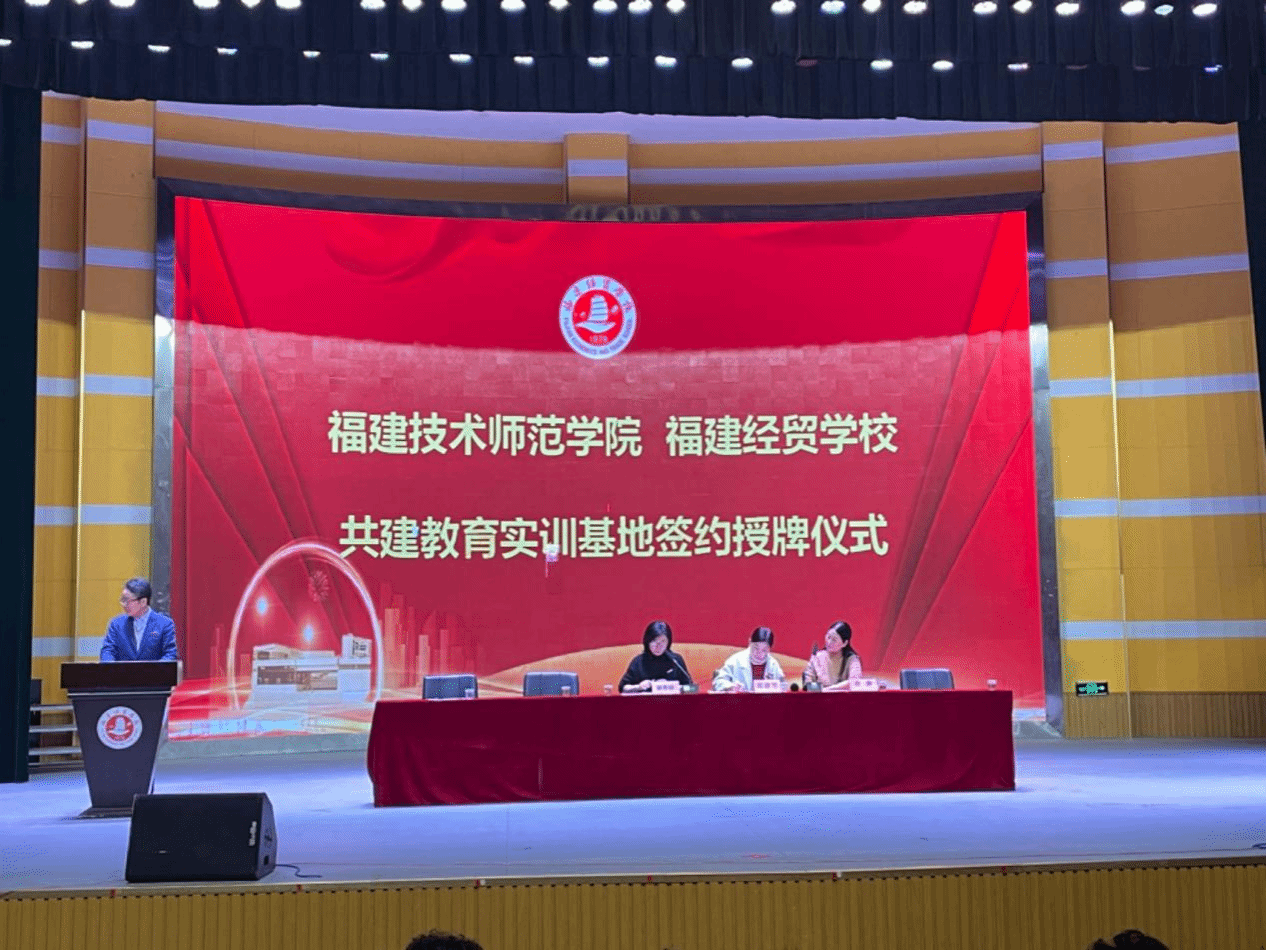 仪式上,福建经贸学校校长郑建芳致欢迎辞,介绍福建经贸学校办学历史、办学理念及专业设置特色,并对同学们提出三点要求:一要有角色意识;二要懂教学规范;三要有纪律意识。我校外国语学院副院长郑静、文化与法律学院副院长谢西娇分别介绍学校、学院概况并强调毕业生在教育实习过程中应注意的问题。随后,我院副院长谢西娇代表文化与法律学院(海外教育学院)与福建经贸学校签订共建教育实习基地合作协议、并向福建经贸学校授予“福建技术师范学院汉语言文学专业教育实习实践基地”牌匾。