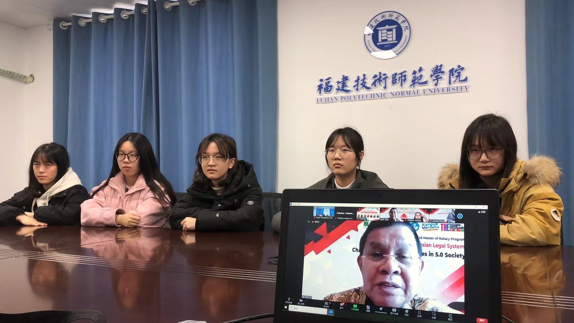 本周,文法学院师生代表应邀参加《The Dynamic of Indonesian Legal System: Challenges and Opportunities in 5.0 Society》国际培训项目。该培训项目由印尼雅尔西大学主办,由印尼、中国、澳大利亚、菲律宾、马来西亚等各国专家线上授课,来自世界各国的参训学生共180余人。我院2021级信用风险管理与法律防控专业汪露花、郑欣蕾、吴凌桢、黄李颖、杨彬贞5位同学全程参与该培训项目。