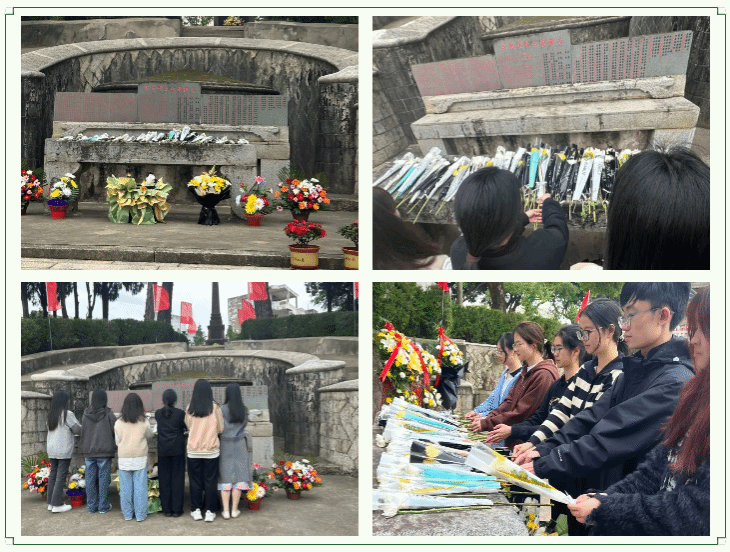 一草一木一忠魂,一山一石一丰碑。我院2023级各班团支部通过丰富多彩的主题活动,不仅表达了对革命先烈的深切追思和崇高敬意,还在缅怀英魂的过程中增强了团体凝聚力,感受并传承革命烈士的铮铮铁骨和大无畏精神。