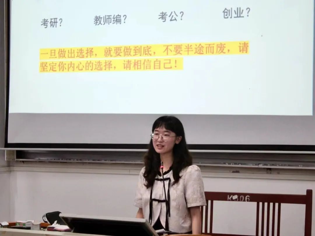 此次分享会上,同学们通过与优秀毕业生的面对面交流,在考研和教师招聘考试的备考方法、备考心态以及临场发挥等方面收获了宝贵的经验启示。同时,优秀毕业生们的亲身经历也激励着学弟学妹勇敢面对挑战,在逐梦之路上保持热情、坚持到底。