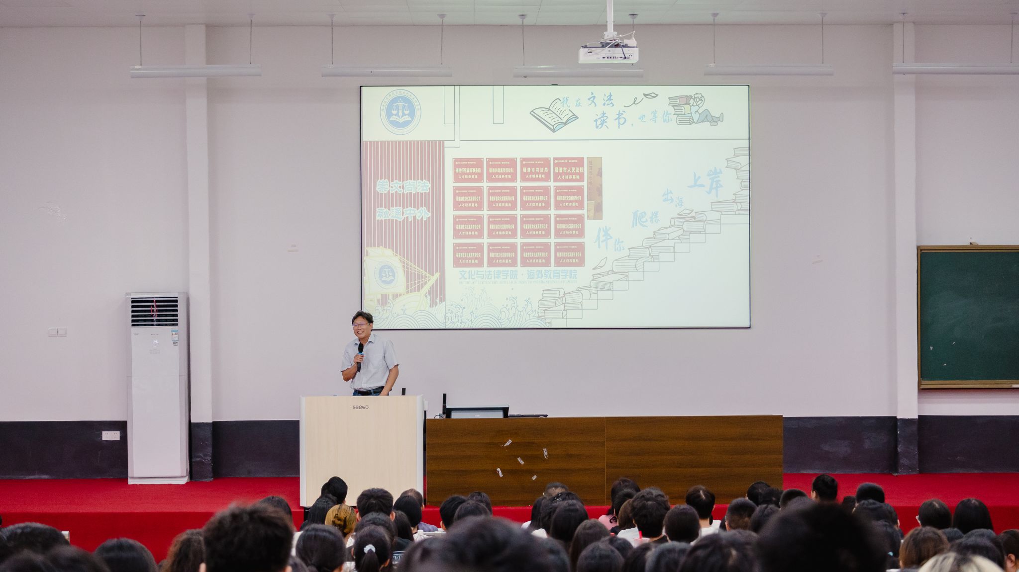 陈春彦院长向同学们作了热情真挚的讲话。陈春彦院长详细介绍了学院的发展历程、办学情况和雄厚师资,并以学院宣传标语“伴你 爬楼 出海 上岸”为引,解读学院的院名以及“崇文尚法,融通中外”的院训,勉励同学们更好地认识学院文化,领悟“立仁怀远 明则守正”的深意。
