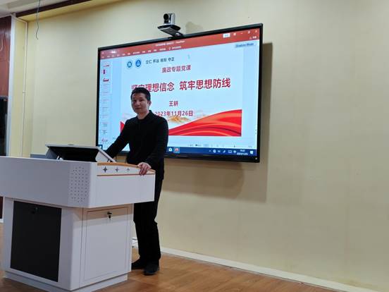 11月26日晚上,我院党委副书记王耕在科学楼303教室作了题为“坚定理想信念 筑牢思想防线”的专题党课,学院党员、发展对象及入党积极分子参加了本次党课。