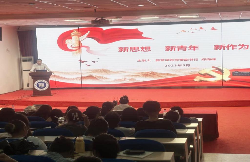 为了进一步加强入党积极分子对党的认识,端正入党动机,推动主题教育高质量开展。5月19日晚,教育学院党委副书记郑向峰于科学报告厅讲授主题为《新思想新青年新作为》的党课,我院2023年上半年入党积极分子等学生参加。