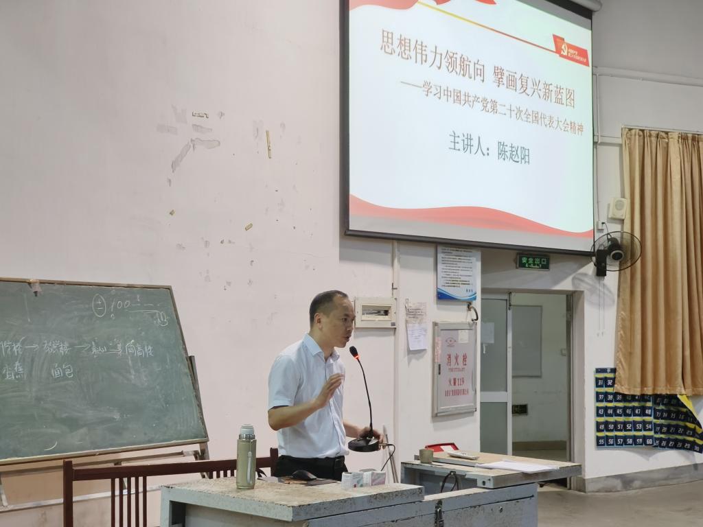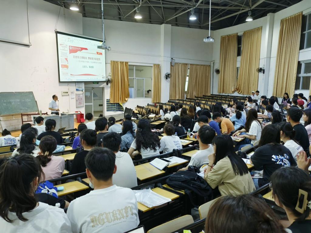 为深入学习贯彻党的二十大精神,进一步推动主题教育高质量开展,5月6日晚,马克思主义学院副院长陈赵阳教授在向高园报告厅(二)为五马校区全体学生发展对象上了一堂题为“思想伟力领航向 擘画复兴新蓝图--学习中国共产党第二十次全国代表大会精神”的主题教育专题党课。