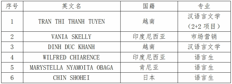 根据我校来华留学生录取有关规定,经过留学生个人在线申请,海外教育学院线上审核,海外教育学院及相关单位联合面试,决定拟录取VANIA SKELLY等3人为我校2025级全日制本科生,WILFRED CHIARENCE等3人为校2025年秋季语言生,现对拟录取人进行公示,最终录取结果以上级教育主管部门审批结果为准。